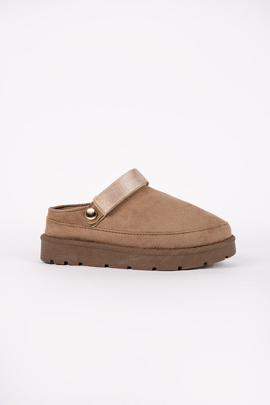 Jane Ladies Fur Lined Chestnut Mule Slipper