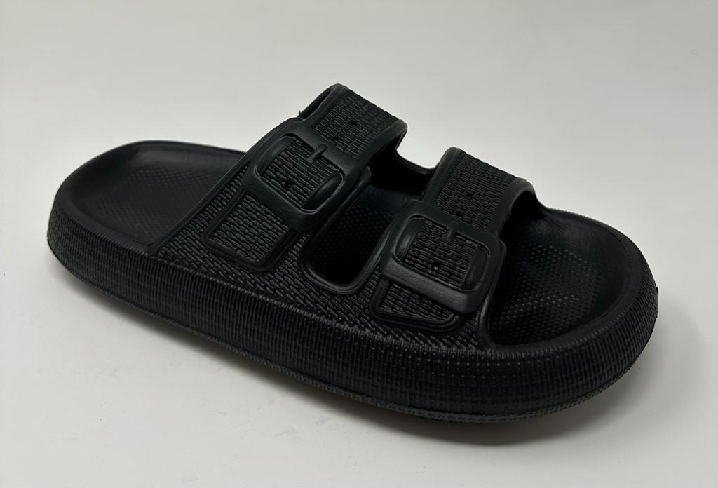 Matt Twin Buckle Men's Pillow Slider Black